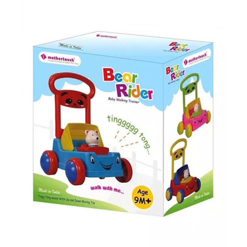 Bear rider is unique gift for little ones.Bear rider is unique designed and perfect product for your children to have as their own first vehicle.Attractive shape colours and durable plastic body.Specially designed broad durable wheel for better grip and smooth move on any surface.Bear moves up and down with ting tong sound to keep baby moving with fun.Handle shape is specially designed for comfortable grip.